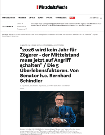 Bernhard Schindler, Senator h.c., ist Unternehmer, Investor, Autor – und einer der führenden Köpfe für strategisches Business Matchmaking im deutschsprachigen Raum.. […]